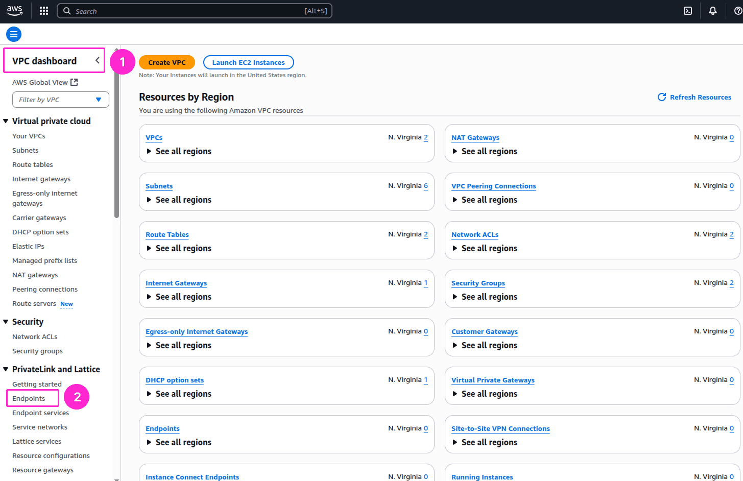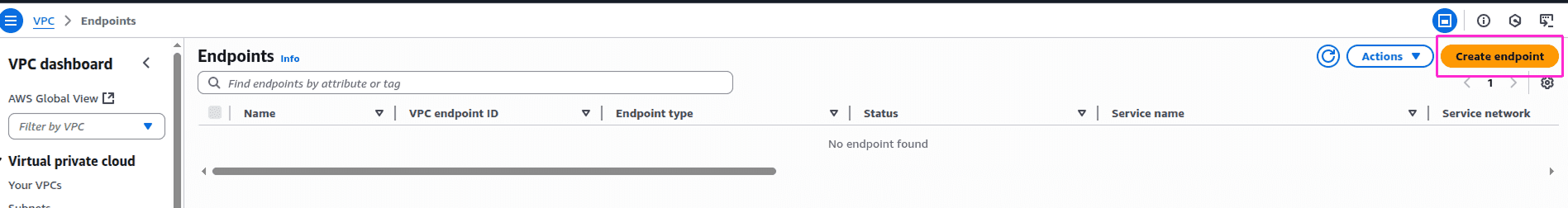 In the AWS Management Console, navigate to VPC > Endpoints.