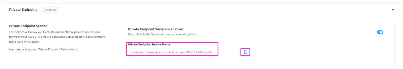 -RegionCopy this information — you’ll need it when creating your AWS Private Endpoint Interface.